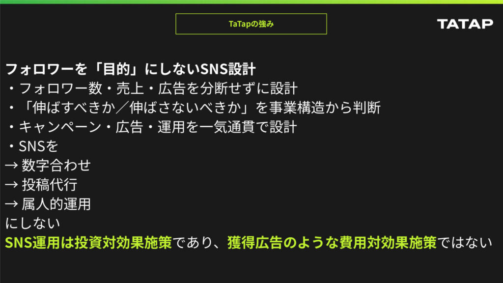 Tatapの強み|Instagram 1000フォロワー 企業 伸ばし方