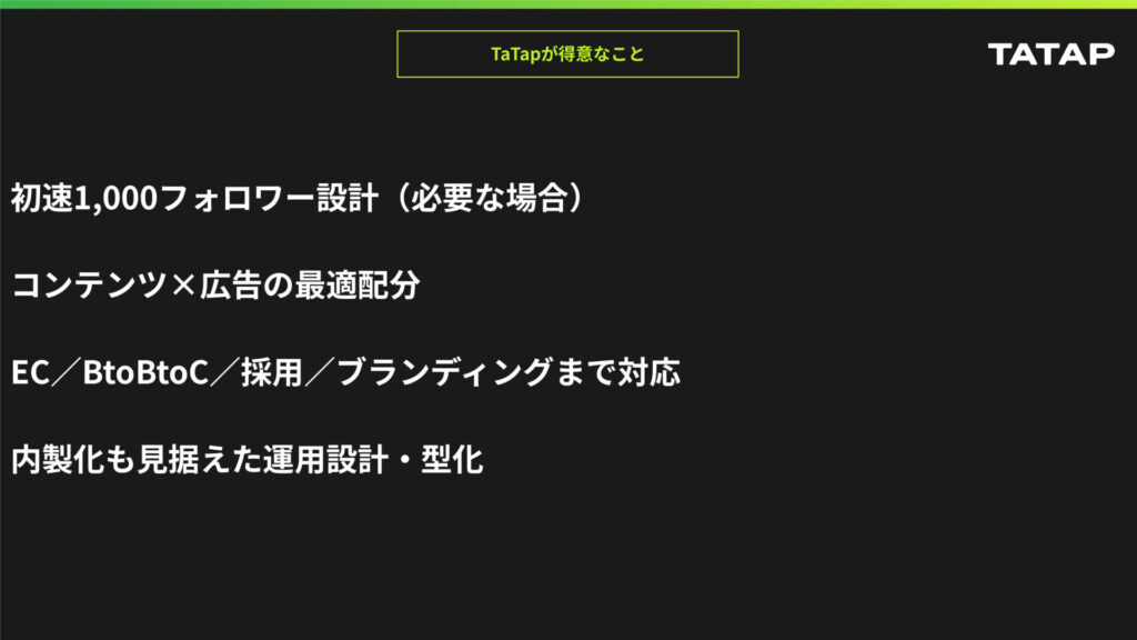 Tatapの得意なこと|Instagram 1000フォロワー 企業 伸ばし方