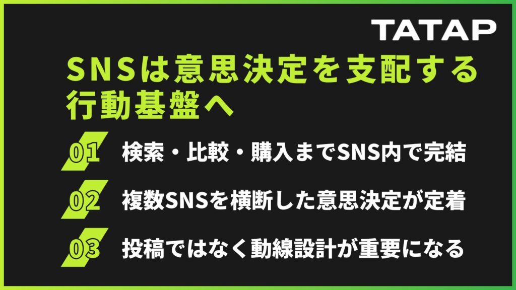予測1:SNSは「投稿メディア」から「行動インフラ」へ|SNSマーケティング 2026 7つの予測