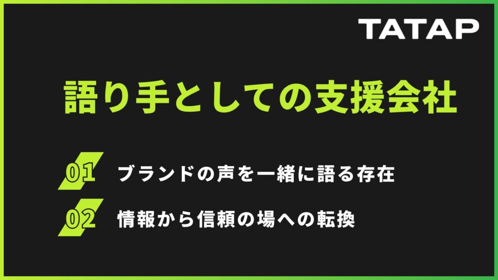 - 支援会社はブランドの声を世に届ける「語り手」になる