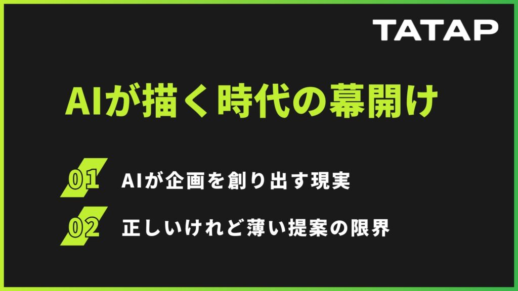 ただし、AIの出す企画は“正しいけれど、薄い”。