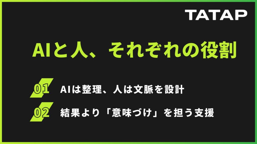AIは「結果を出すこと」に集中しますが、支援会社が担うべきは“なぜその結果を出したいのか”という意味付けです。