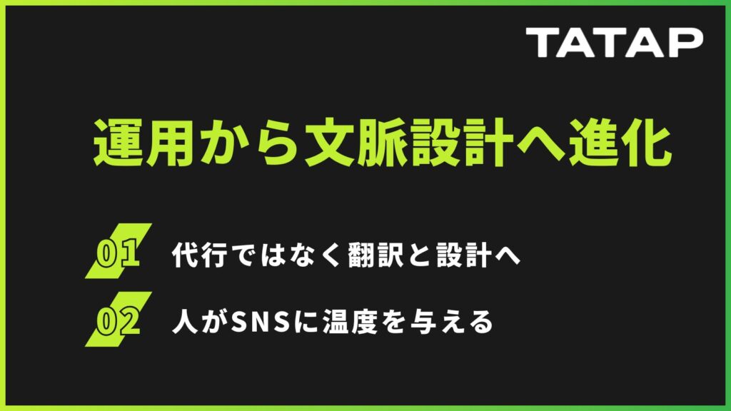 これからのSNS支援会社は、ブランドの代わりに運用する人ではなく、「一緒に物語を語る人」へと変化していきます。