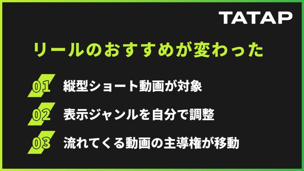 リールという影響力の大きい機能で、この考え方が採用されたこと自体が、Instagramの姿勢の変化を象徴しているといえるでしょう。