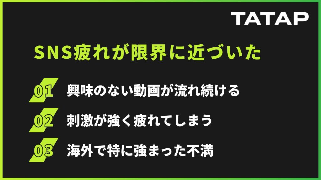 SNSは本来、情報収集や娯楽として便利な存在であるはずです。しかし、 「自分で選んでいる感覚がない」状態が続くことで、その便利さが次第にストレスへと変わっていきました。