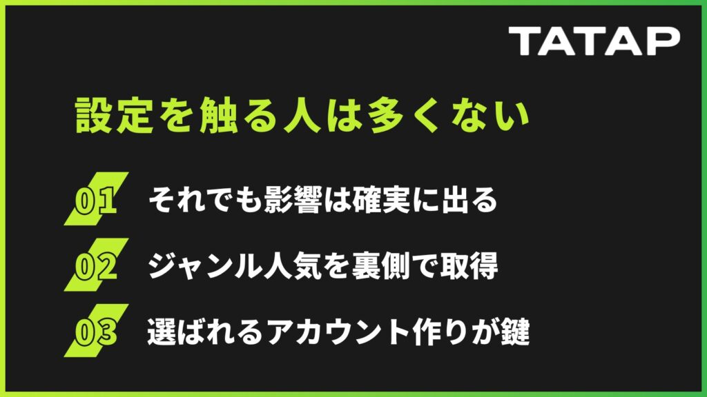 ただし、それは「影響が小さい」という意味ではありません。実際には、こうした設定を積極的に触る層は、情報感度が高く、SNSの使い方にも明確な意図を持っているユーザーである場合が多いといえます。