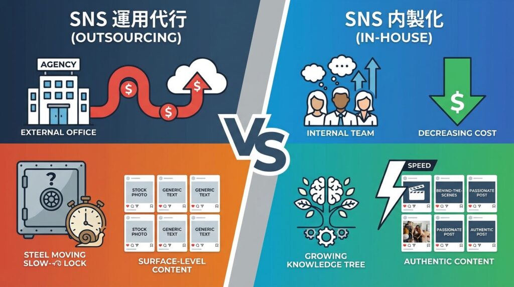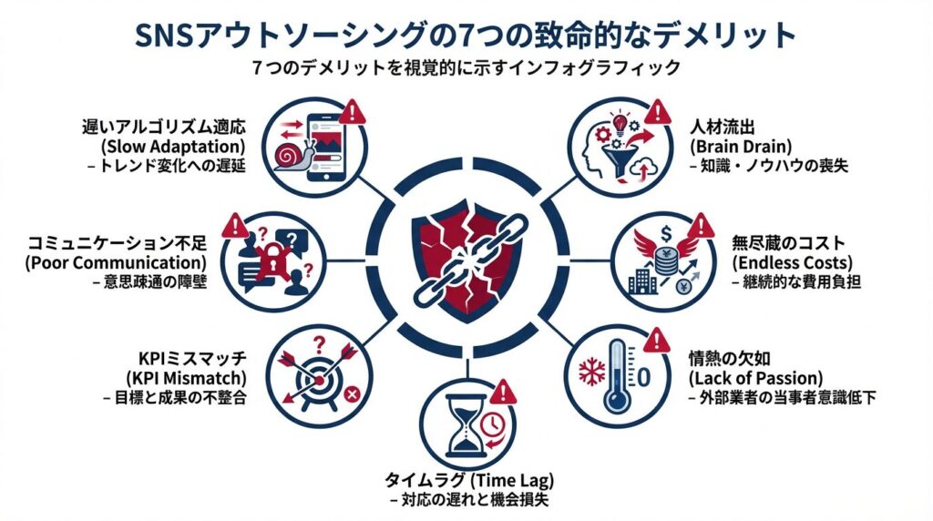 【2026年最新】SNS運用代行の致命的な7つのデメリットとは?外注の限界と「内製化」で利益を最大化する完全ガイド