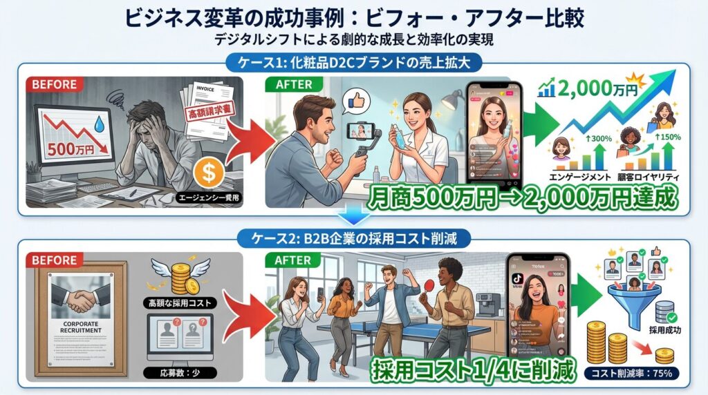 事例①:化粧品D2Cブランド(月商500万→2,000万への飛躍)