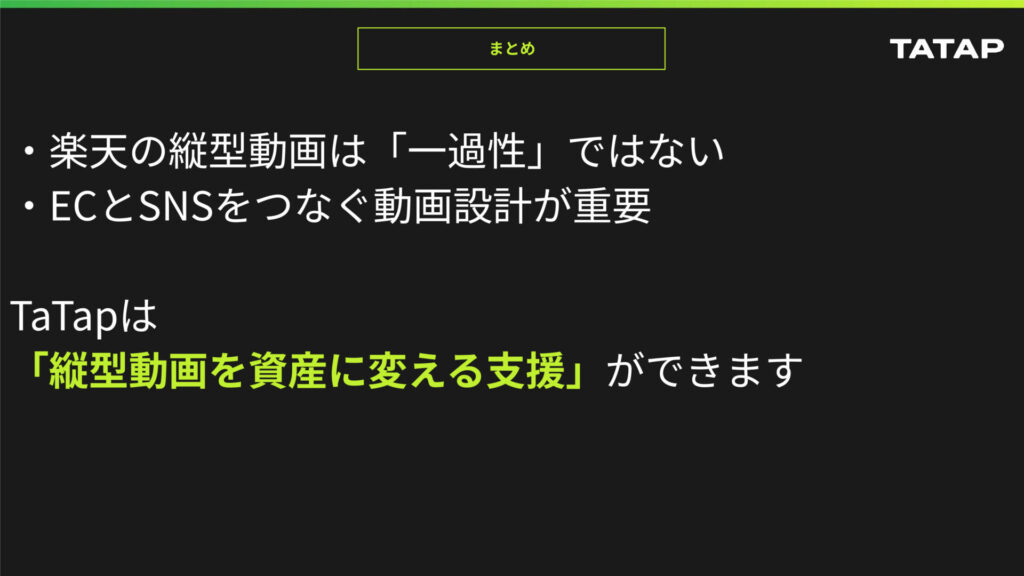 運用資産としての動画設計:Tatapのこだわり|楽天市場 ディスカバリーコマース 縦型動画