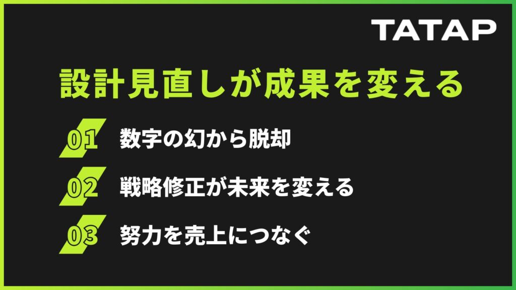 戦略的な「設計の見直し」という小さな一歩が、数ヶ月後の結果を劇的に変えることになるはずです。