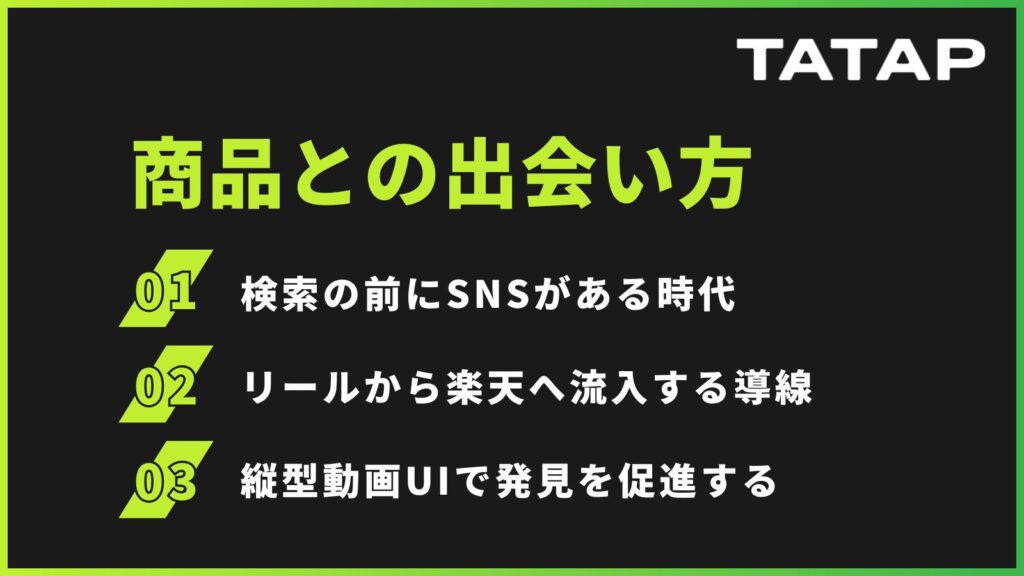 楽天の今回の動きは、ある意味でTikTokやInstagramショッピングへの逆襲とも言えます。