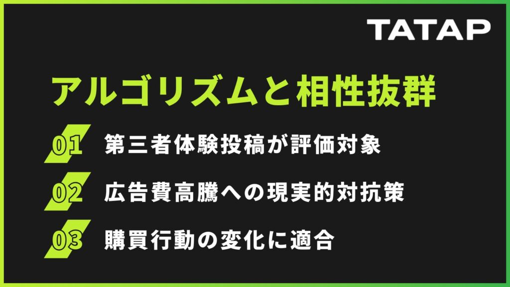 - 日常の文脈: 日常の生活文脈の中で、ユーザーが「自分ごと化」したコンテンツとして紹介されることが、企業広告との決定的な違いになります。