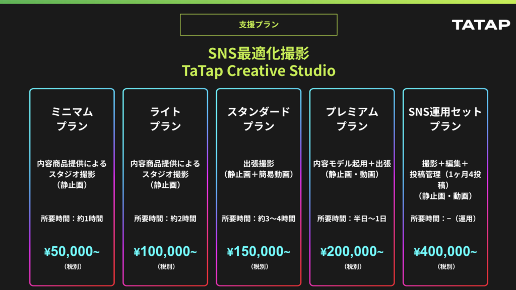 素材撮影/SNS運用も気になる方はTaTap Creative Studioもぜひ!