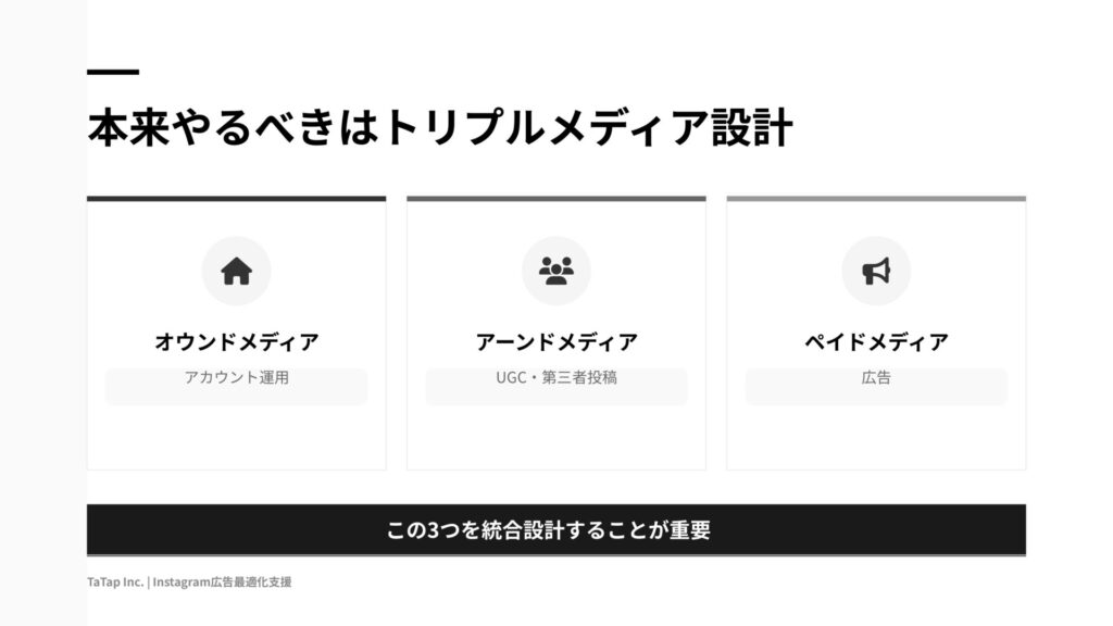 成果を最大化する「三位一体」のトリプルメディア設計|Instagram 広告 運用手数料 10%!?