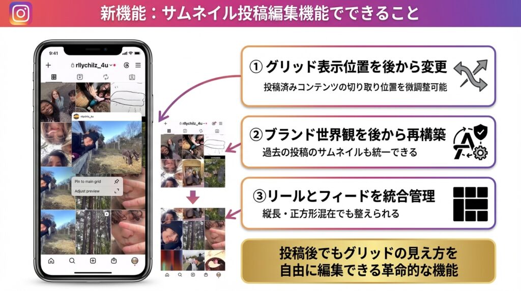【2026年最新】Instagram新機能「サムネイル投稿編集機能」を徹底解説!プロフィールグリッド最適化のコツ