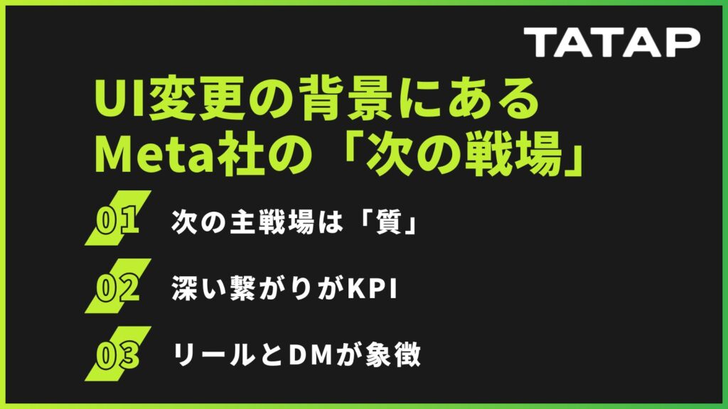 UI変更の背景にあるMeta社の「次の戦場」|Instagram UI変更 リール DM(ダイレクトメッセージ)