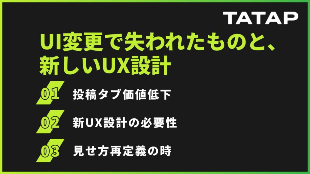 - 投稿タブの価値は低下しUX戦略が重要になった