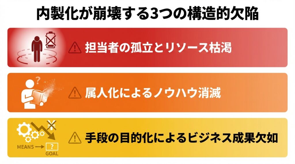 【組織の限界】SNS運用の内製化(インハウス)が崩壊する「3つの構造的欠陥」