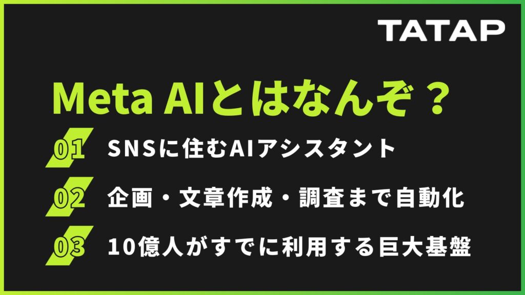 というわけでメタAIをフックにしつつ、これが今後のSNSにどう影響するのか、ユーザーはどう変わるのか、そして企業やブランドはどんな一手を打つべきかを解説していきます。