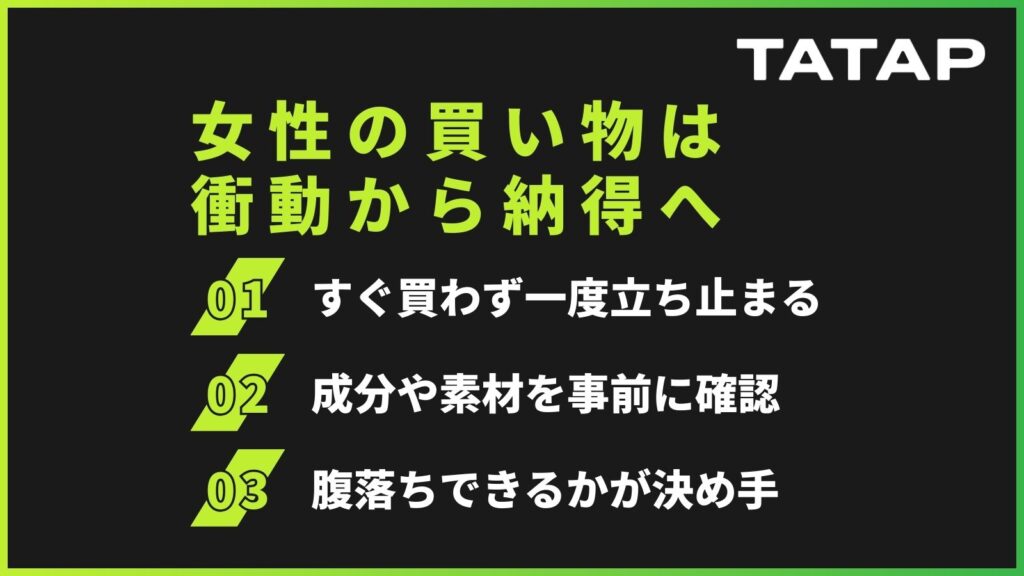 - 女性の購買は衝動より納得重視