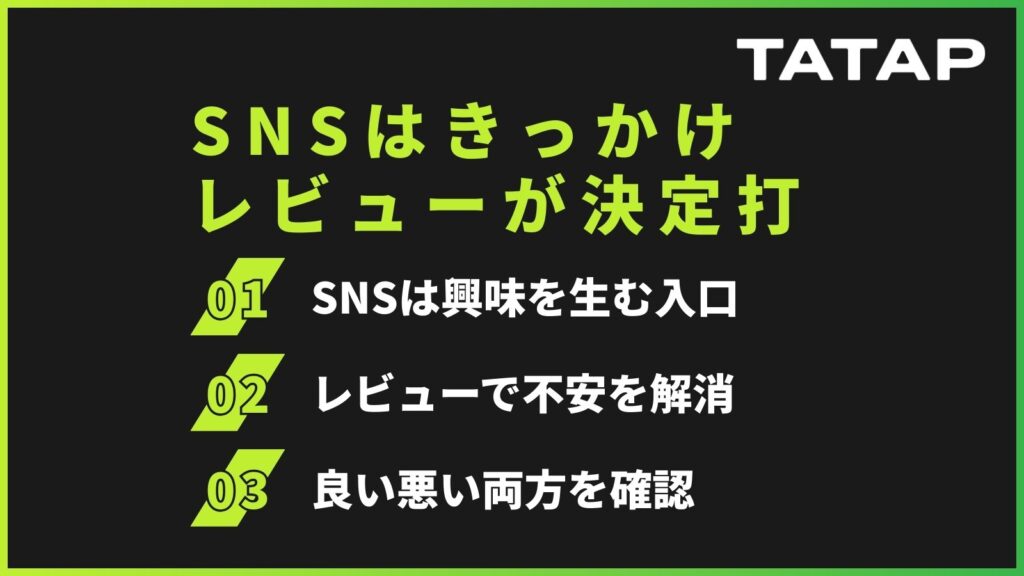 次に、SNSは“きっかけ装置”、決定権はレビューへという点です。