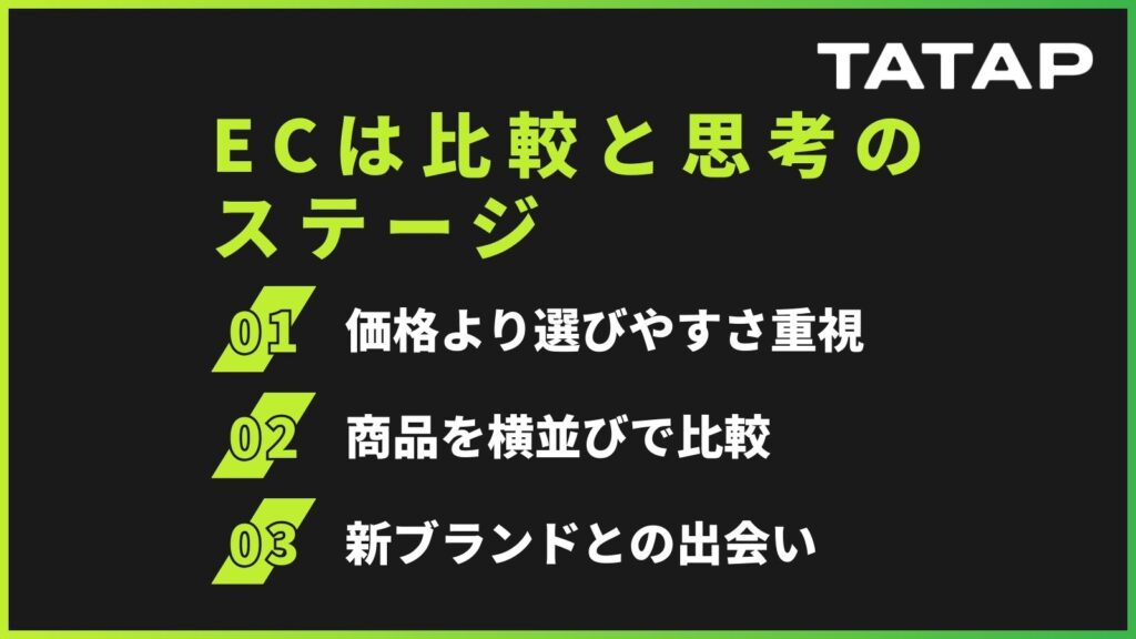 次に、ECは安い場所ではなく「比較と思考の場」になっているという点です。