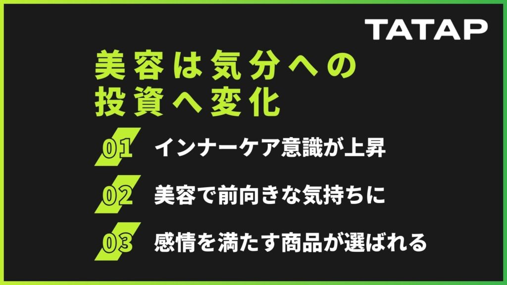 最後に、美容は“効果”から“気分への投資”へという変化です。