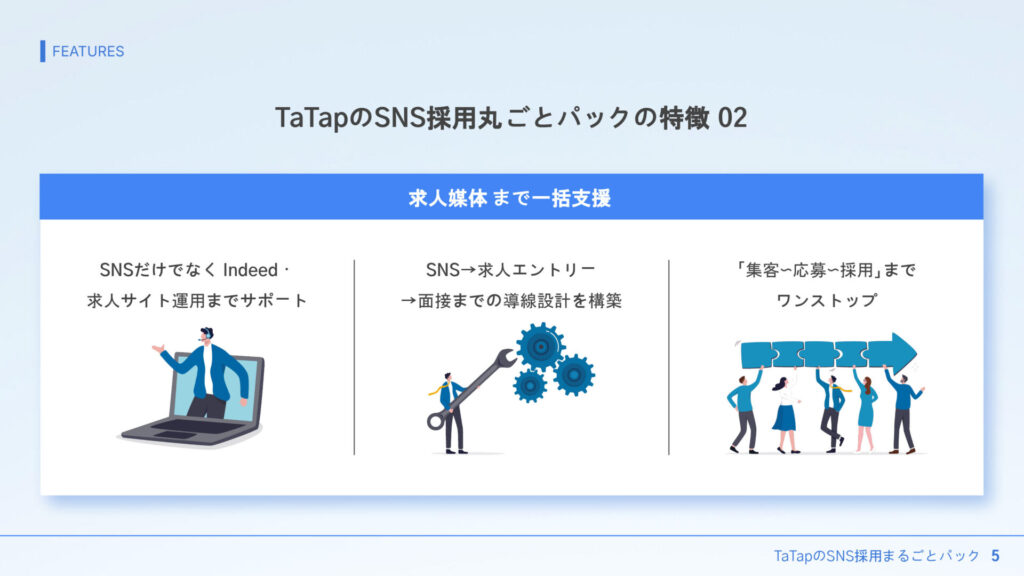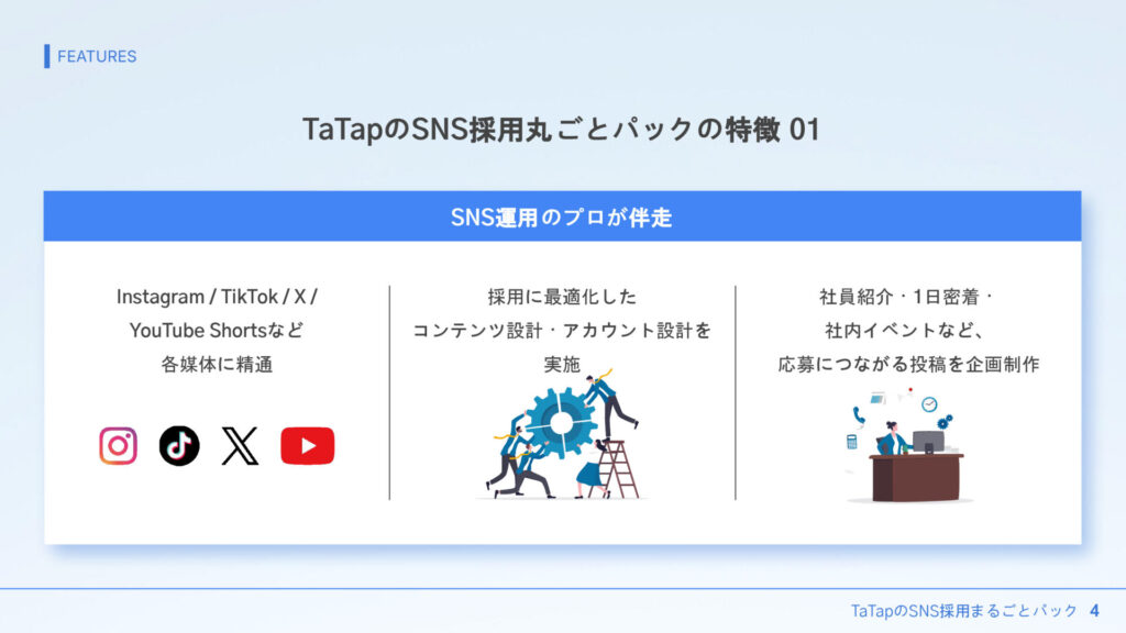 『TaTapのSNS採用丸ごとパック』の3つの特徴|採用SNS 採用媒体一気通貫支援