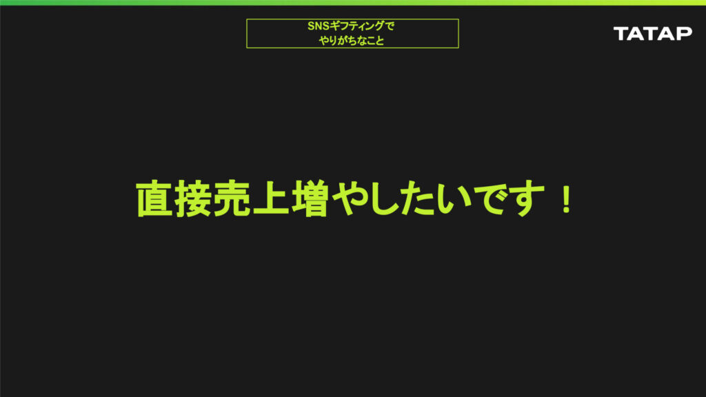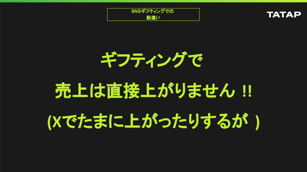 よくある誤解として、「ギフティングで売上を直接増やしたい」という相談があります。しかし、基本的にSNSギフティングは直接売上を上げる施策ではありません。