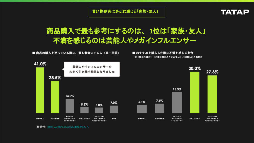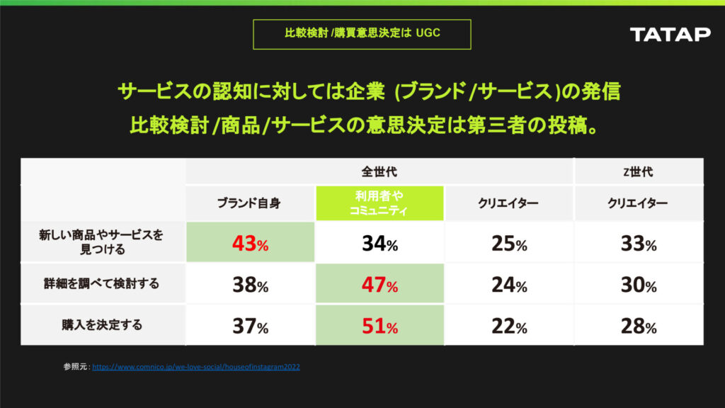 - 比較検討や購入意思決定は、利用者やコミュニティの声が最も参考になる