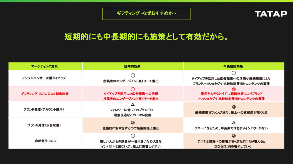 SNSギフティングは短期的にも中長期的にも有効な施策です。