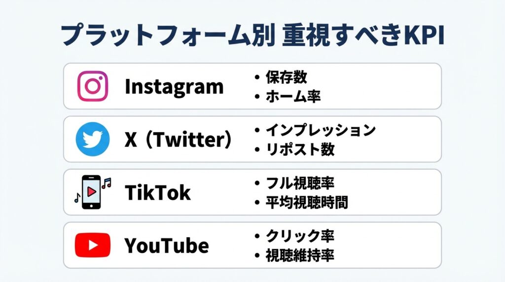 - KPIは媒体ごとに違う(保存/維持率/CTRなど)