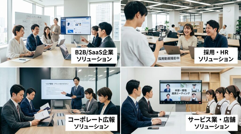SNSの伴走支援は、単なる「フォロワー増やし」のツールではありません。B2B、採用、コーポレートブランディングなど、企業の抱える深刻な経営課題を直接的に解決する手段です。