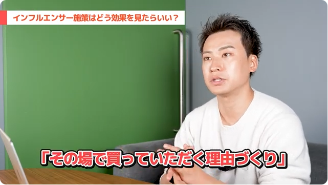インタビュワー: へえ、なるほど。ちなみに、もう一つ質問なのですが、インフルエンサー施策については、どのように効果を見たら良いのでしょうか?