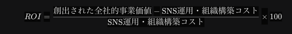 SNS組織構築の投資対効果は、次の数式で表されます。