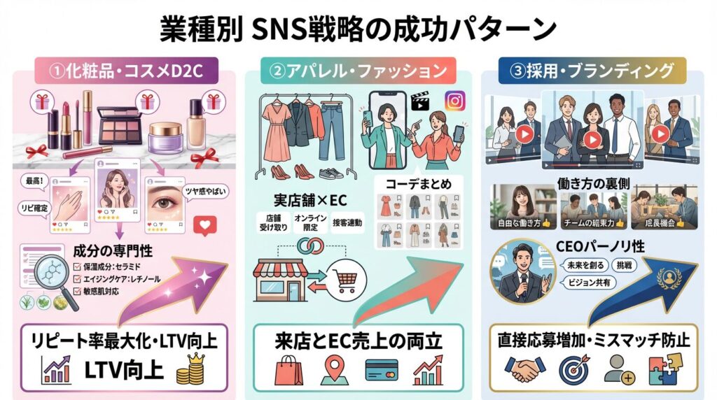 - Instagram: 世界観の構築と「親密度」の醸成。既存顧客のLTV最大化。