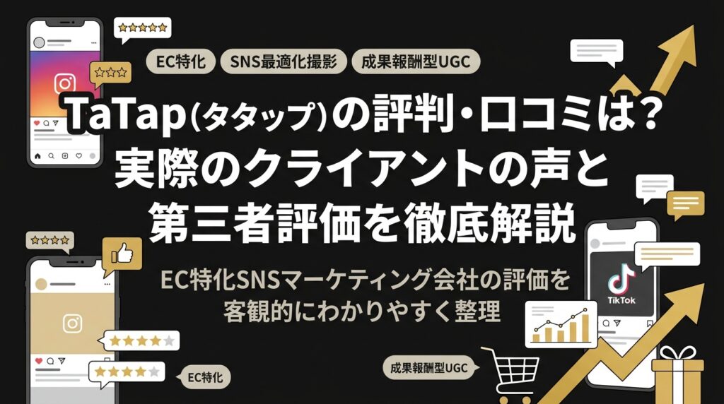 TaTapは「SNS最適化撮影=TaTap Creative Studio」と「成果報酬型ギフティング支援=TaTap UGC Studio」を軸にしたEC特化型のSNSマーケティング会社です。業界内での評価の実態を、具体的な声とデータを基に明らかにします。