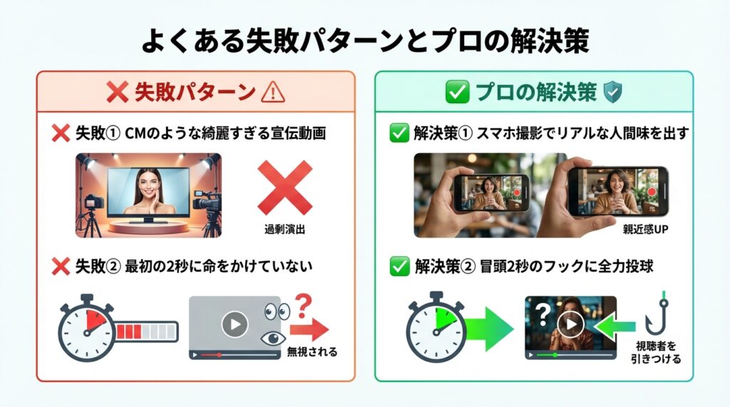 失敗パターン①:テレビCMのような「綺麗すぎる宣伝動画」を作ってしまう