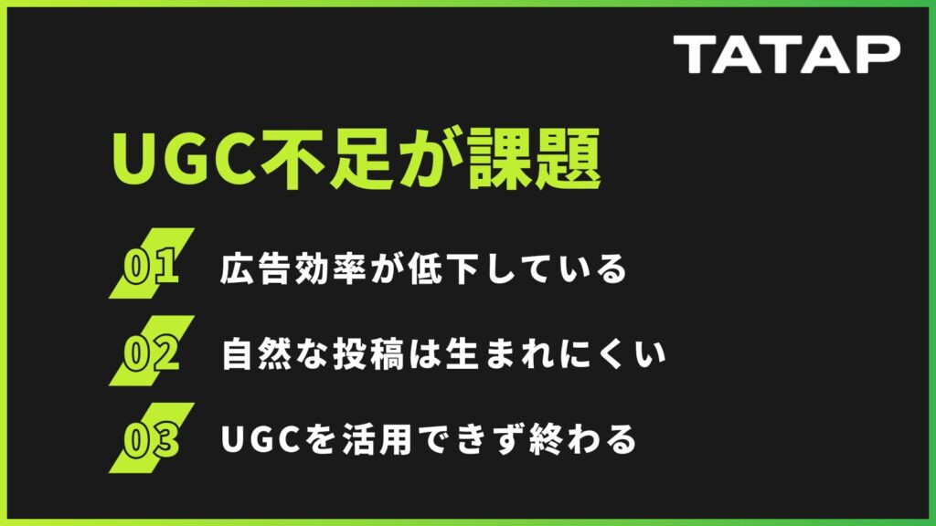 - せっかく出たUGCを活用できない 投稿はあるのに売上につながらない。
